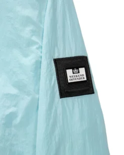 Staple jacket made from lightweight high density woven 100% Nylon parachute style fabric with misted lightly reflective surface. Treated with an additional DWR (Durable Water Repellent) coating.