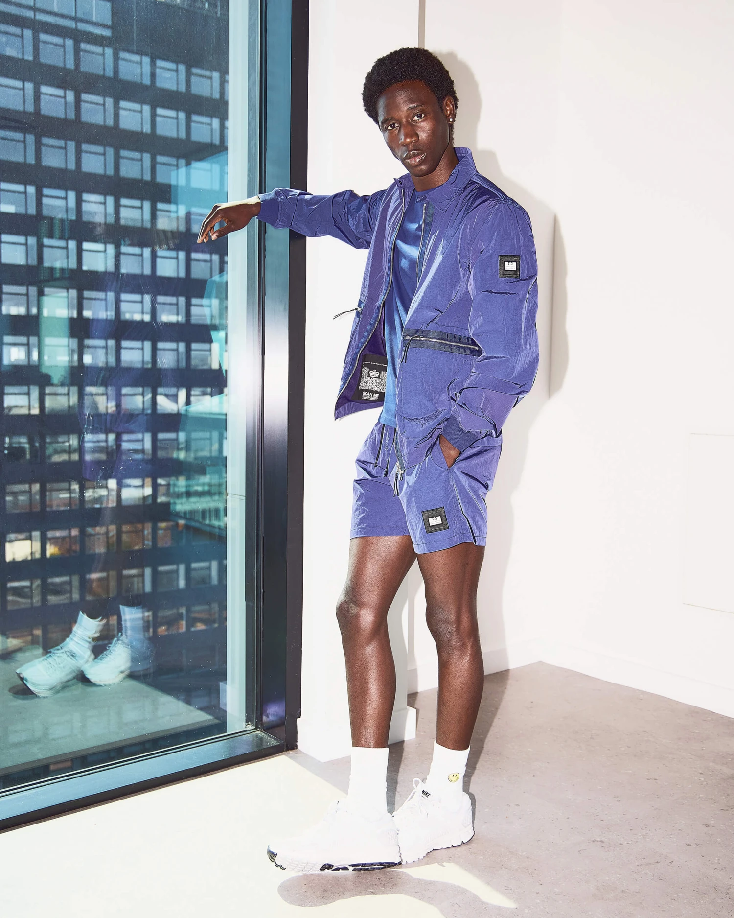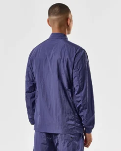 WO staple over-shirt made from a lightweight high density woven 100% Nylon parachute style fabric with a lightly reflective surface. Treated with an additional DWR (Durable Water Repellent) coating.
